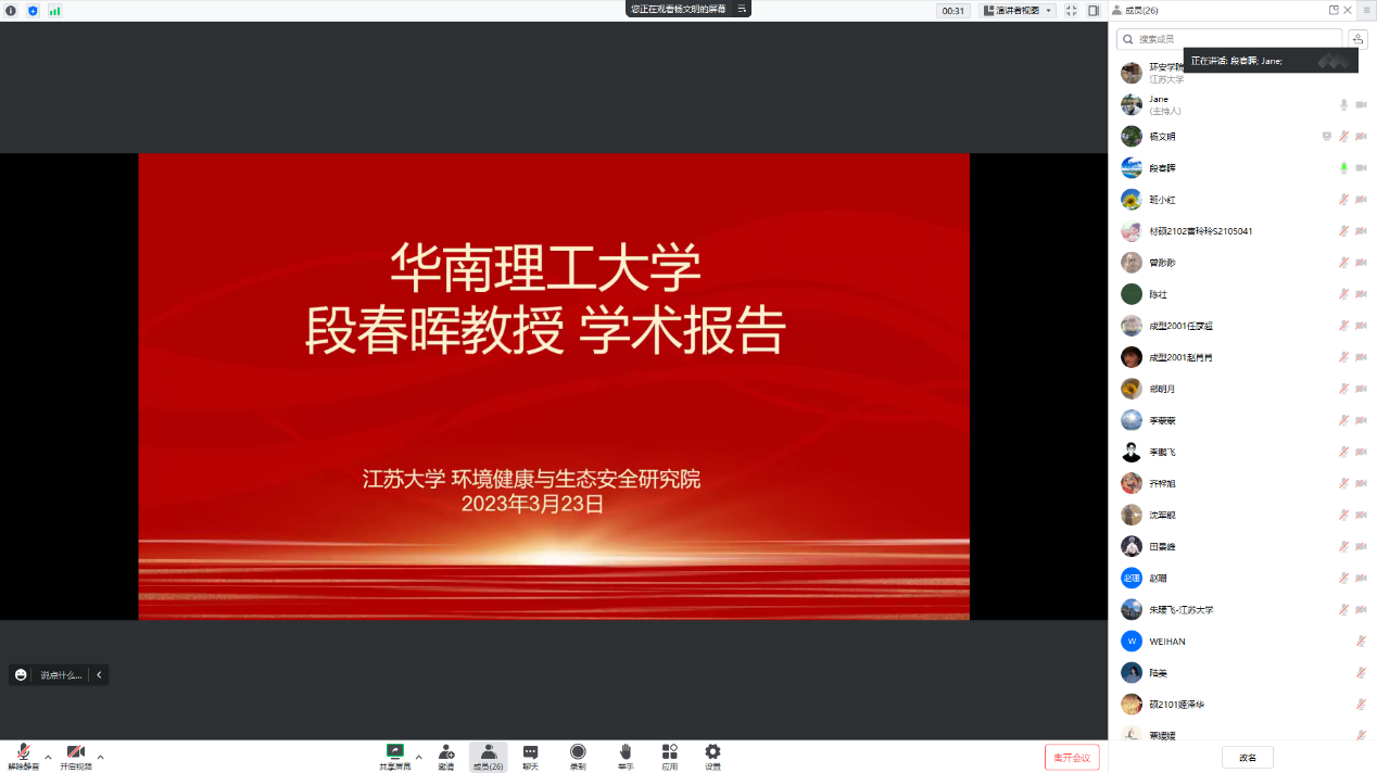 3月23日上午,华南理工大学段春晖教授应环境健康与生态安全研究院邀请,为百家乐模拟器