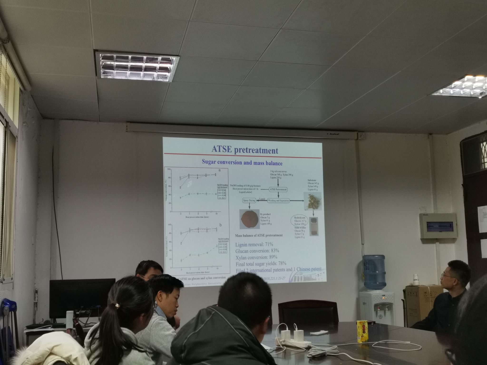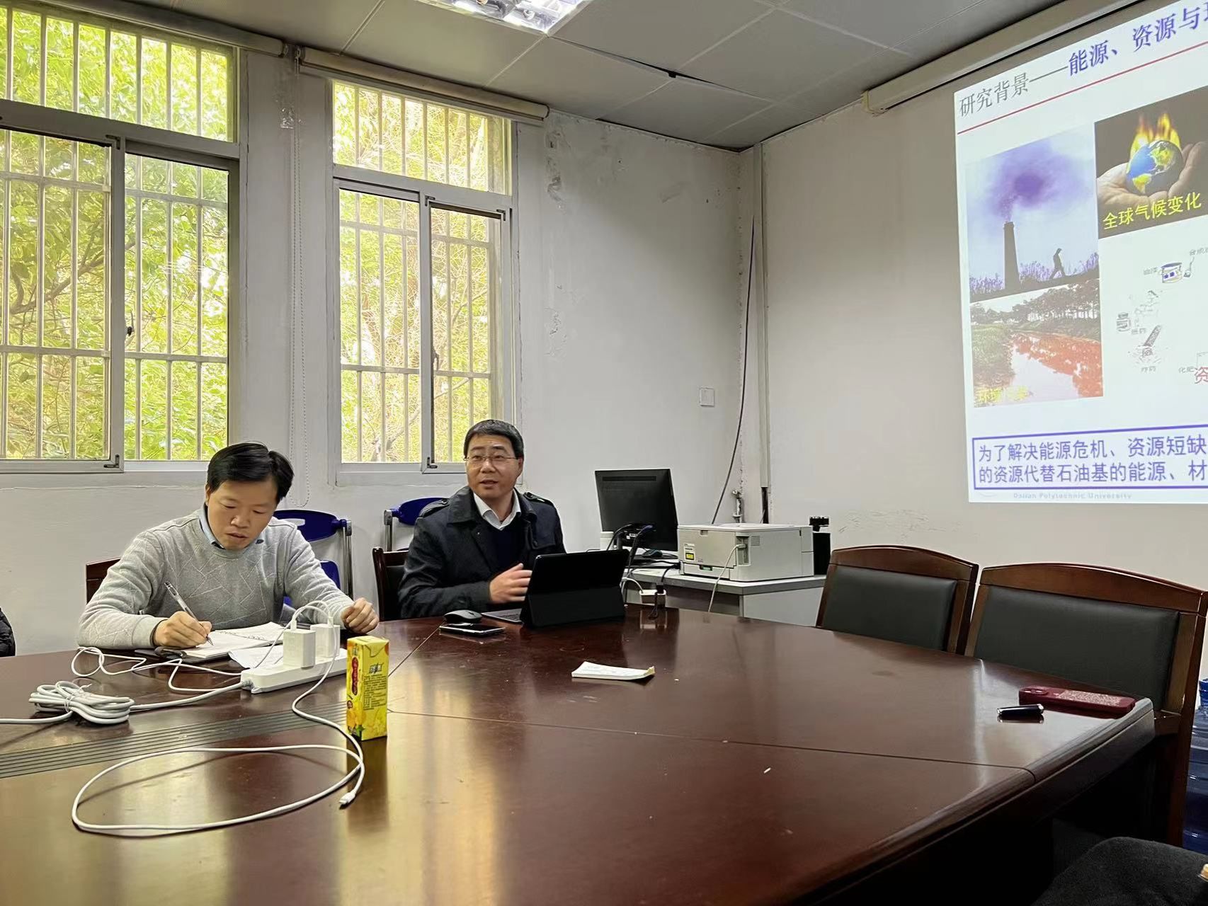 师生做了题为“木质素原料的预处理分离及高效利用”的学术报告。王海松教授介绍了其团队近年来在木质纤维生物炼制领域的原料预处理分离、纤维素、半纤维素及木质素综合利用等方面的最新研究进展。会后,王海松教授与参会师生就报告内容、研究心得等进行了深入交流。