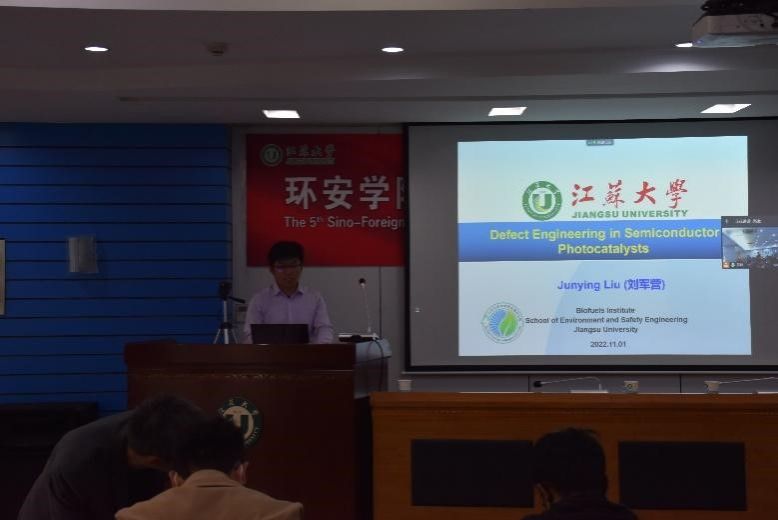 、化学化工学院、能源研究院等多个兄弟学院的投稿近110份,通过专家评审,选出了13个口头报告和16个学术墙报。首先,刘军营教授做了“Defect Engineering in Semiconductor Photocatalysts”的精彩特邀报告,随后,13名中外研究生/博士后分享了自己课题的最新研究进展,内容涉及环境健康与污染、 环境生态、生物质资源利用、水处理、以及“双碳”等各个环境细分领域。