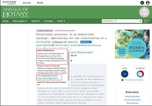 全职外籍教师Susan Rutherford研究员以第一作者及通讯作者(江苏大学为第一单位)关于桉树新物种的研究成果被国际著名植物学期刊《Annals of Botany》在线发表。Susan Rutherford研究员是百家乐模拟器