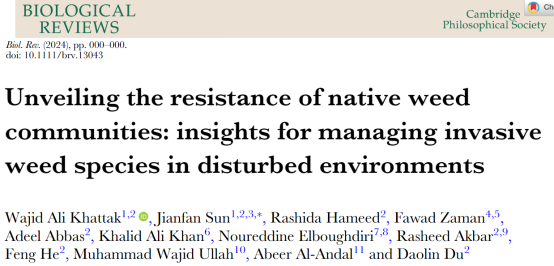 环境生态与修复团队孙见凡老师在生物学旗舰学术期刊Biological Reviews(2022年影响因子14.355,五年影响因子12.8)上发表最新研究成果Unveiling the resistance of native weed communities: insights for managing invasive weed species in disturbed environments。江苏大学为论文第一完成单位,论文第一作者为百家乐模拟器