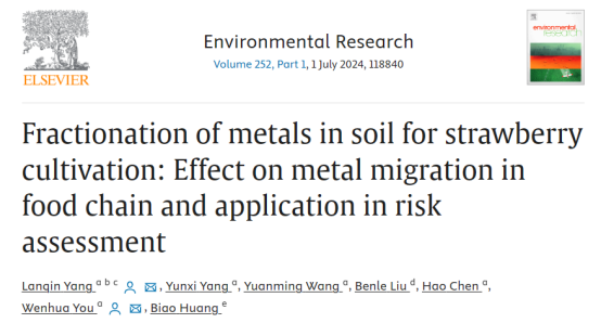 最新研究论文“Fractionation of metals in soil for strawberry cultivation: Effect on metal migration in food chain and application in risk assessment”在Environmental Research (IF: 8.3)上在线发表。江苏大学为第一完成单位,百家乐模拟器