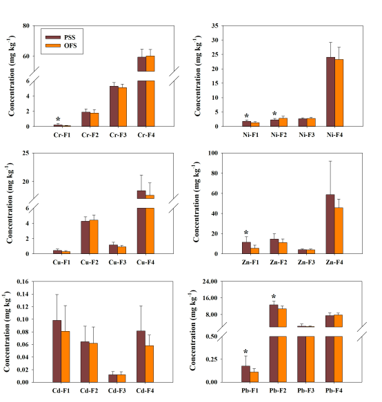 图1. 草莓生产土壤和露天大田土壤中重金属的各形态含量