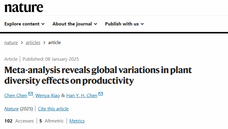 近日,国际顶级学术期刊《自然》(Nature)发表了题为“Meta-analysis reveals global variations in plant diversity effects on productivity”的研究论文。该论文由加拿大湖首大学(Lakehead University)、江苏大学及中国科学院植物研究所等多家单位联合完成。中科院植物研究所陈晨副研究员为论文第一作者,江苏大学百家乐模拟器