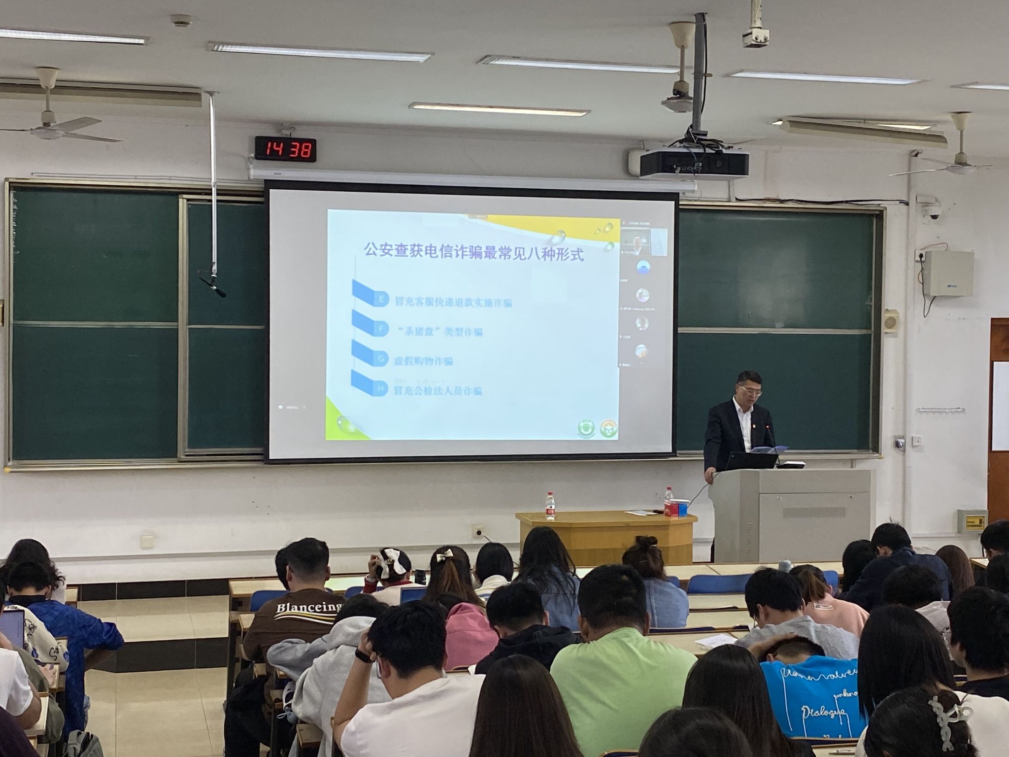 本次讲座积极引导广大师生树立正确的人生观、价值观、消费观,认清电信诈骗、校园“套路贷”等违法犯罪活动的欺诈本质和严重危害,增强防骗意识,有效提高风险识别能力。