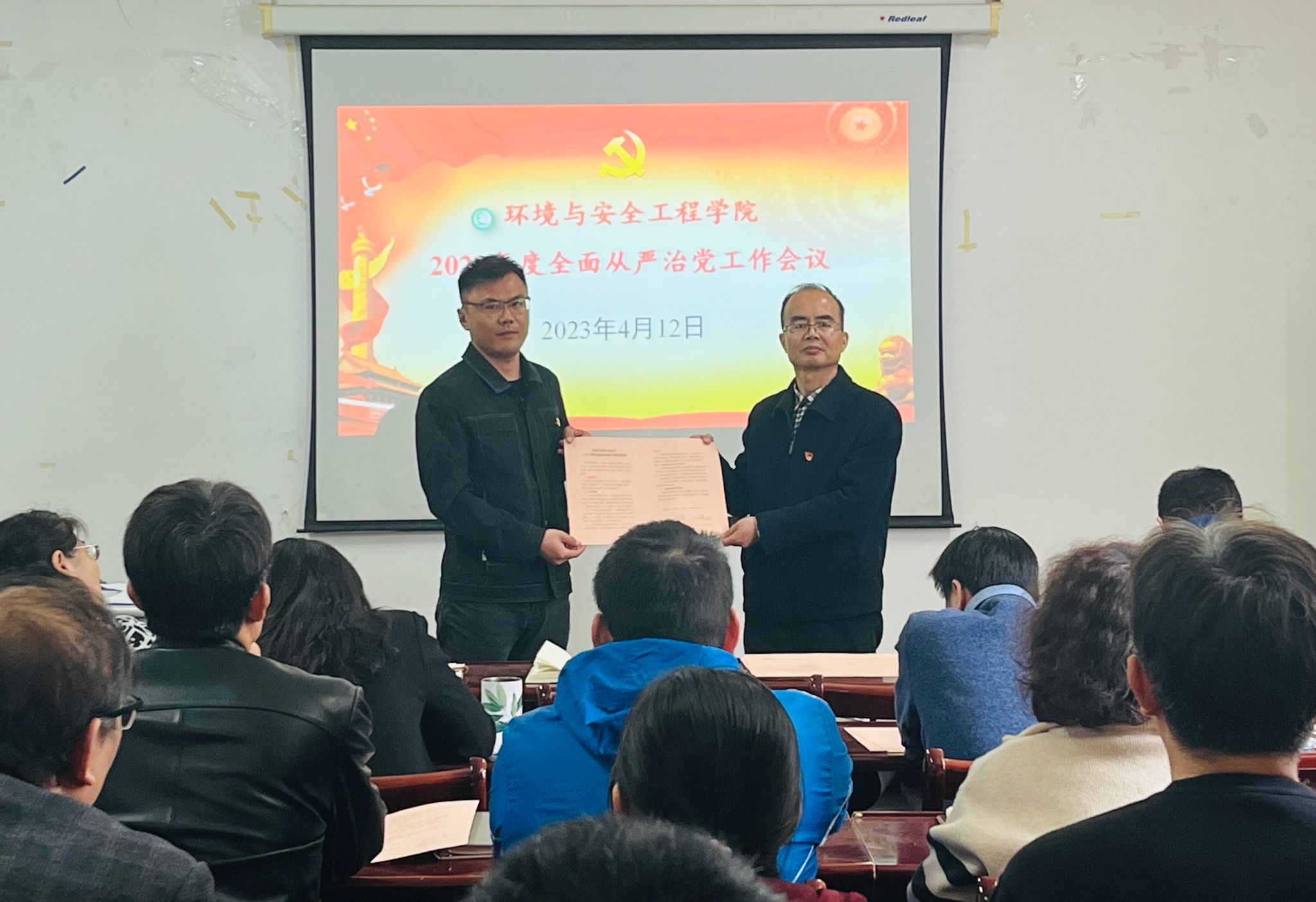 2023年度落实全面从严治党党委主体责任清单》。领导班子代表、教职工党支部书记代表、学生党支部书记代表分别向院党委递交了2023年度全面从严治党责任书。