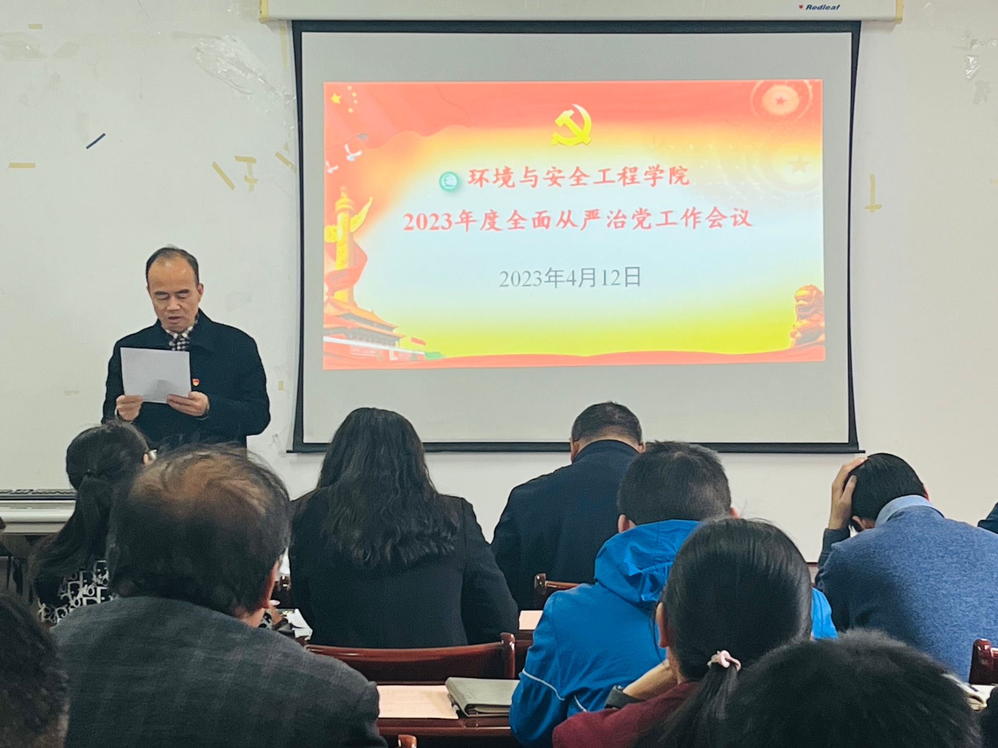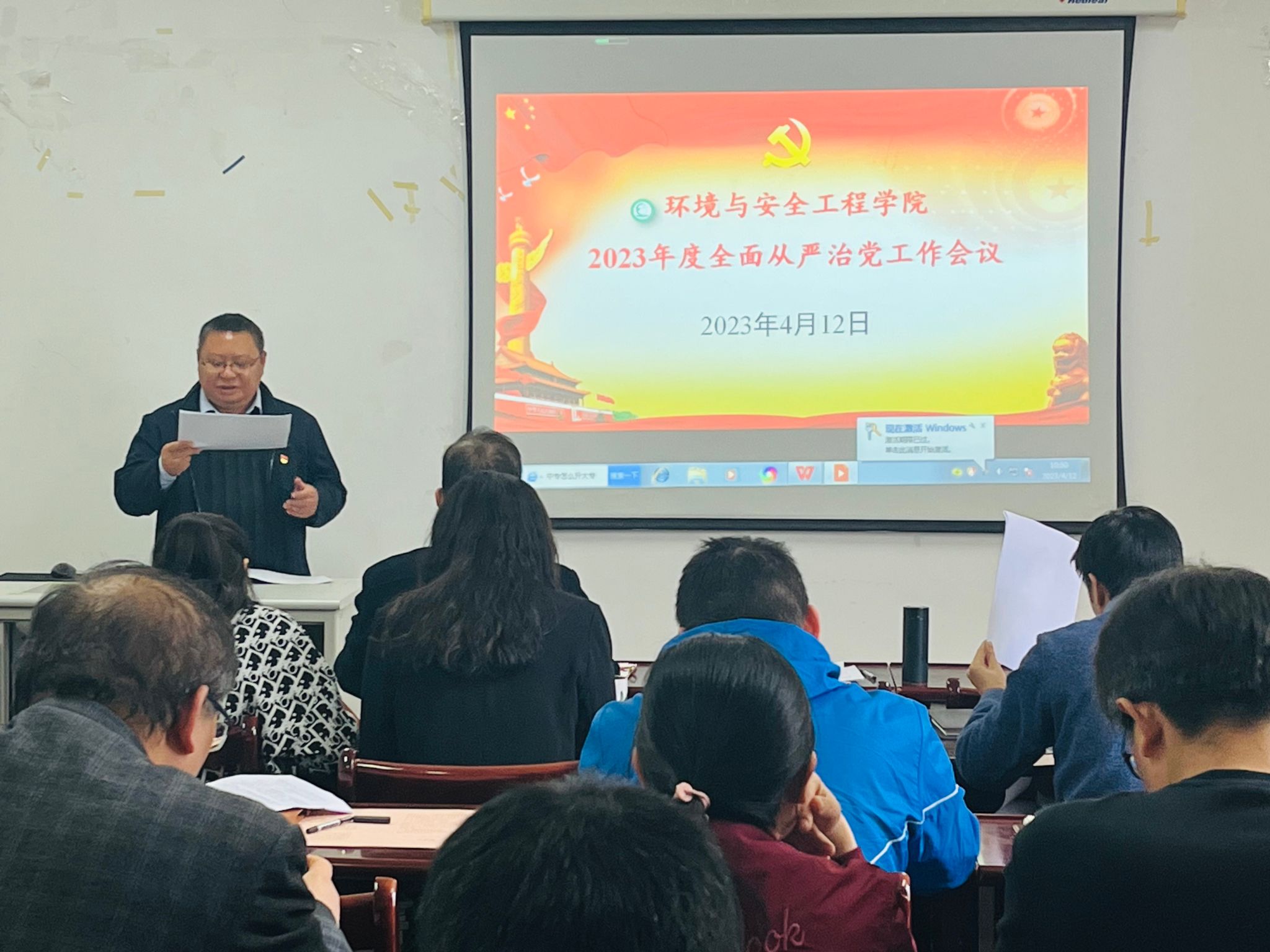 在主楼2311会议室召开2023年度全面从严治党工作会议。学院领导班子成员、党委委员、党支部书记和纪检委员、学院二级单位主任、科级干部参加会议。会议由党委书记黄勇强同志主持。