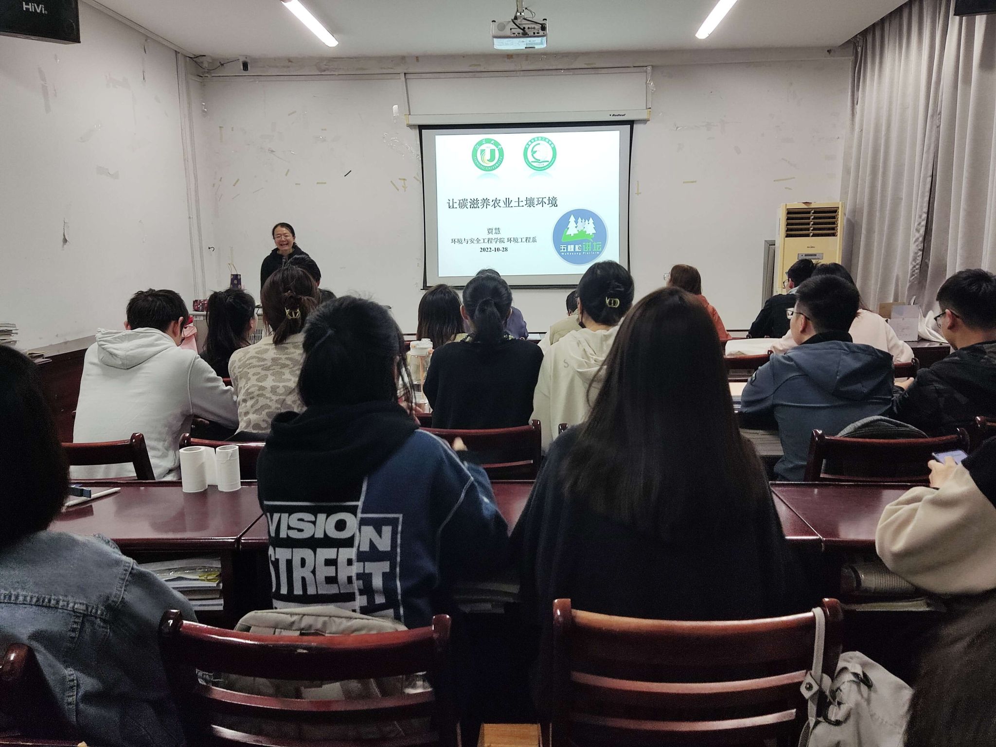 在本次讲坛上,贾慧老师作了题为“让碳滋养农业土壤环境”的讲座。贾老师以碳排放和碳中和为切入点,引入“农业和食物在应对气候变化中可以发挥怎样的作用”的问题。以低碳带动农业绿色转型势在必得,发展低能耗生态农业,通过恢复土壤和生态,利用植物的共生作用来生产食物,这样不仅可以提供更有营养价值的食物,还可以扭转气候变化。讲座内容丰富,讲解生动有趣、引人入胜。