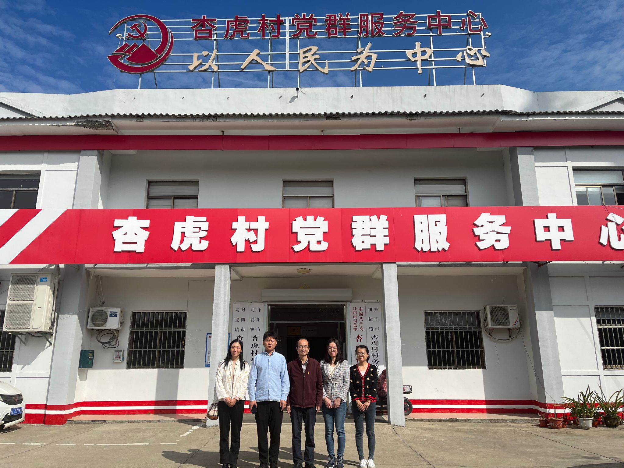 党委书记黄勇强,副书记、副院长杨博,党务办副主任曹霞,环境工程系教工党支部副书记贾慧,来到丹阳市司徒镇杏虎村,和杏虎村党支部书记黄兢商谈建立党建共建基地事宜。