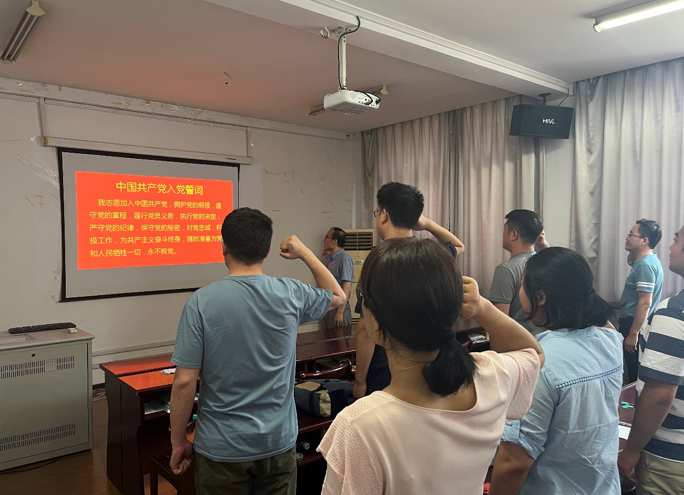 党课结束后,黄勇强同志带领研究院教工党支部党员重温入党誓词。大家右手握拳,庄严宣誓,满怀激情的宣誓声让人深受感染。
