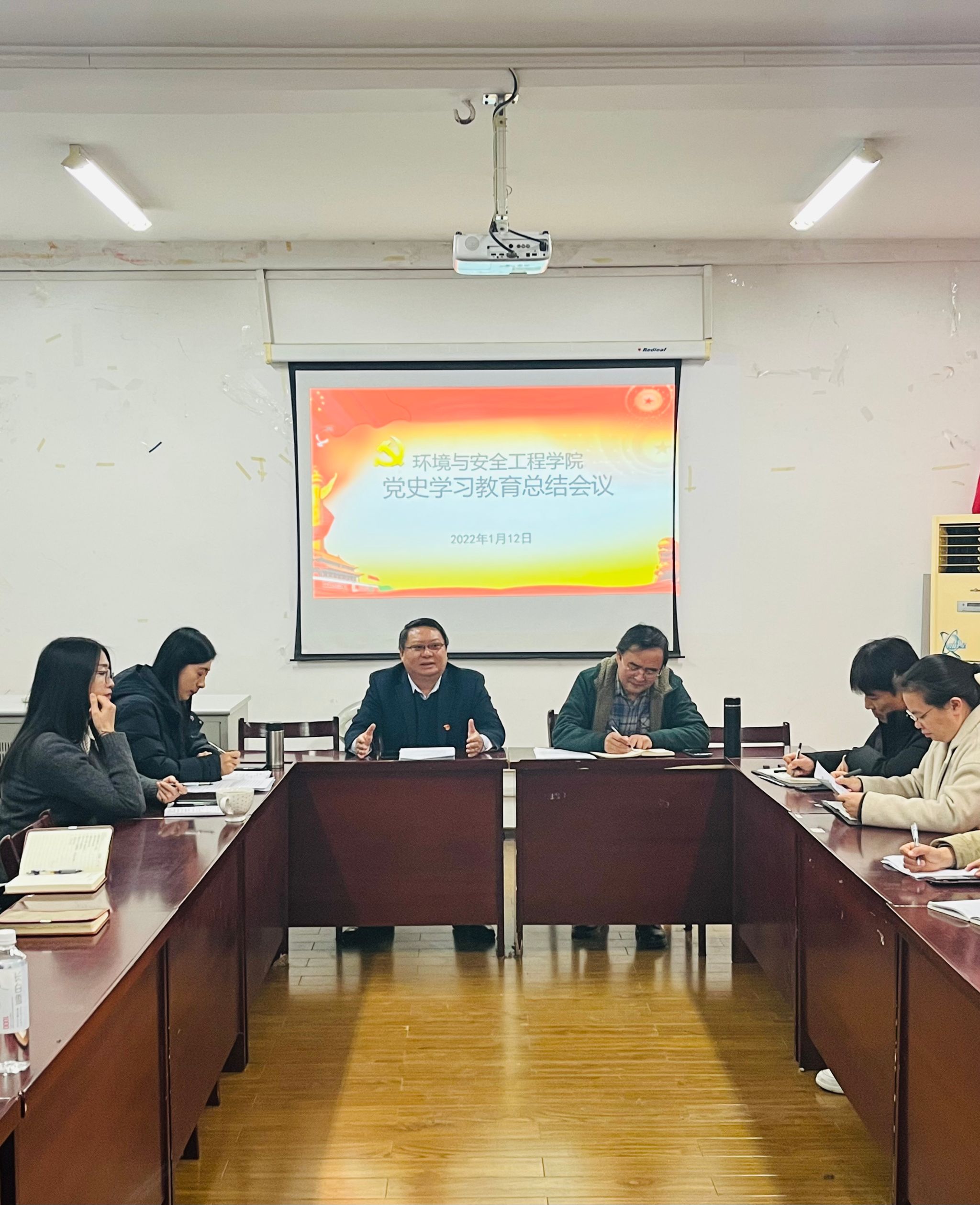 在主楼2311召开党史学习教育总结会议。党史学习教育校内第五指导组组长谢志芳书记出席会议并作指导讲话。会议由院党委副书记、院长杜道林主持。院党委全体委员、领导班子所有成员、党支部书记和师生代表等近40人参加了本次会议。