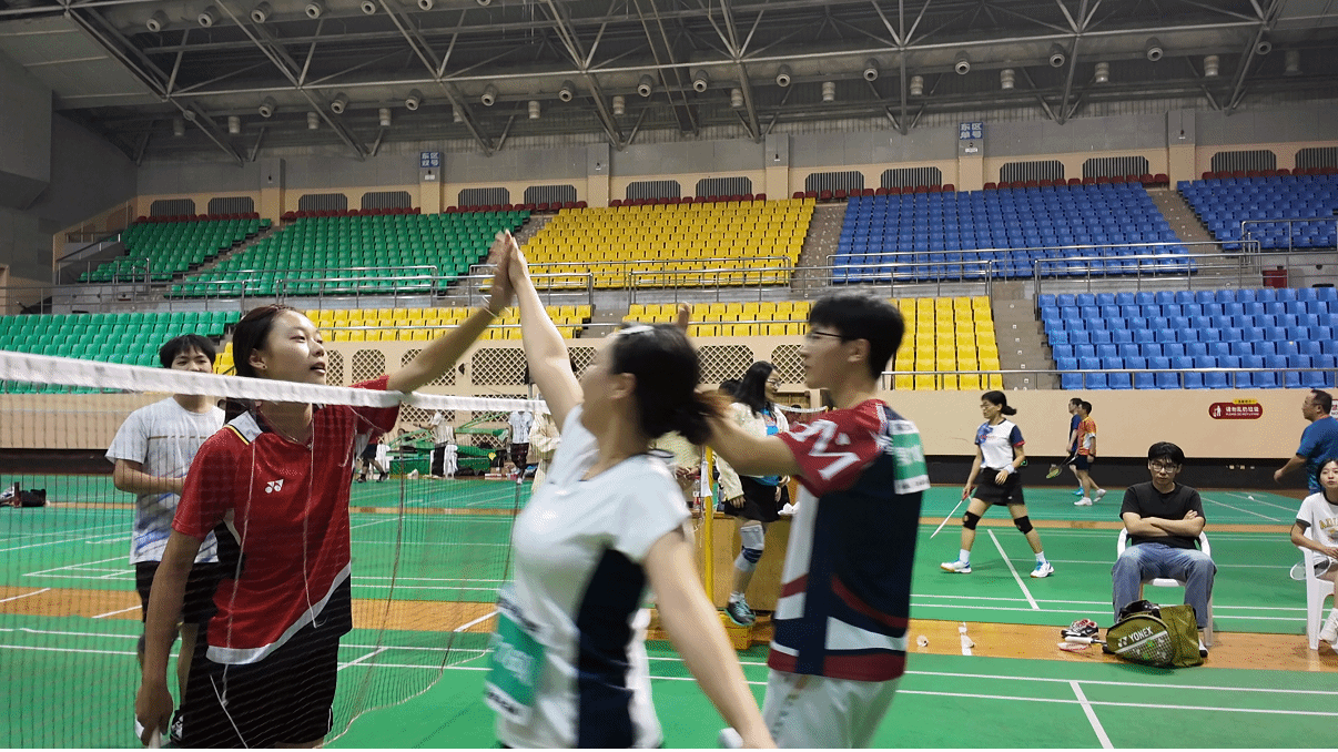 比赛现场,各式各样的“跨身份”组合成为最大看点。组委会要求所有参赛队伍必须由不同身份的成员组成,这一规定旨在促进师生之间的交流与融合。平日实验室里严谨认真的研究生与讲台上传道授业的教授,在混双赛场上成为了并肩作战的搭档;初入校园的本科新生也与高年级的研究生组成了充满活力的女双组合。双打项目极大地考验着队友间的默契与战术配合。在男双赛场,力量与速度激情碰撞;女双赛场则更多展现了技巧的细腻与战术的持久。