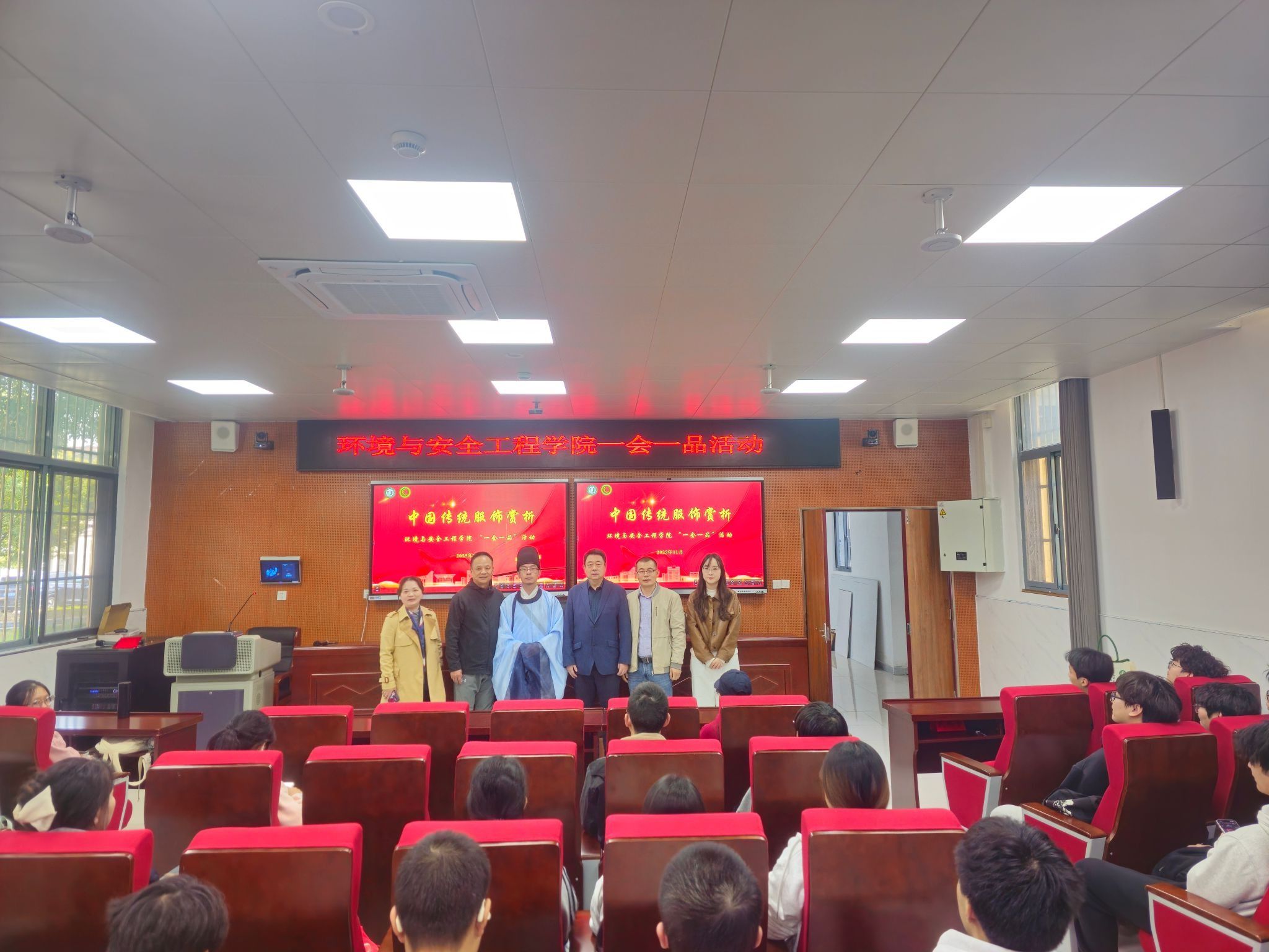 团委联合学院工会在学院楼118报告厅举办“始于衣冠,达于博远——中国传统服饰赏析”美育讲坛,本次活动邀请到江苏吉藏文化创意产业发展有限公司总经理王文韬担任主讲人。活动由工会主席郑敏学主持,90余名中外学生参加了活动。